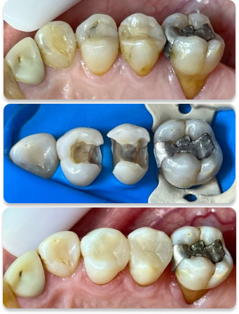 Foto 2.3 – reconstrução em resina para melhor adaptação da onlay em porcelana .